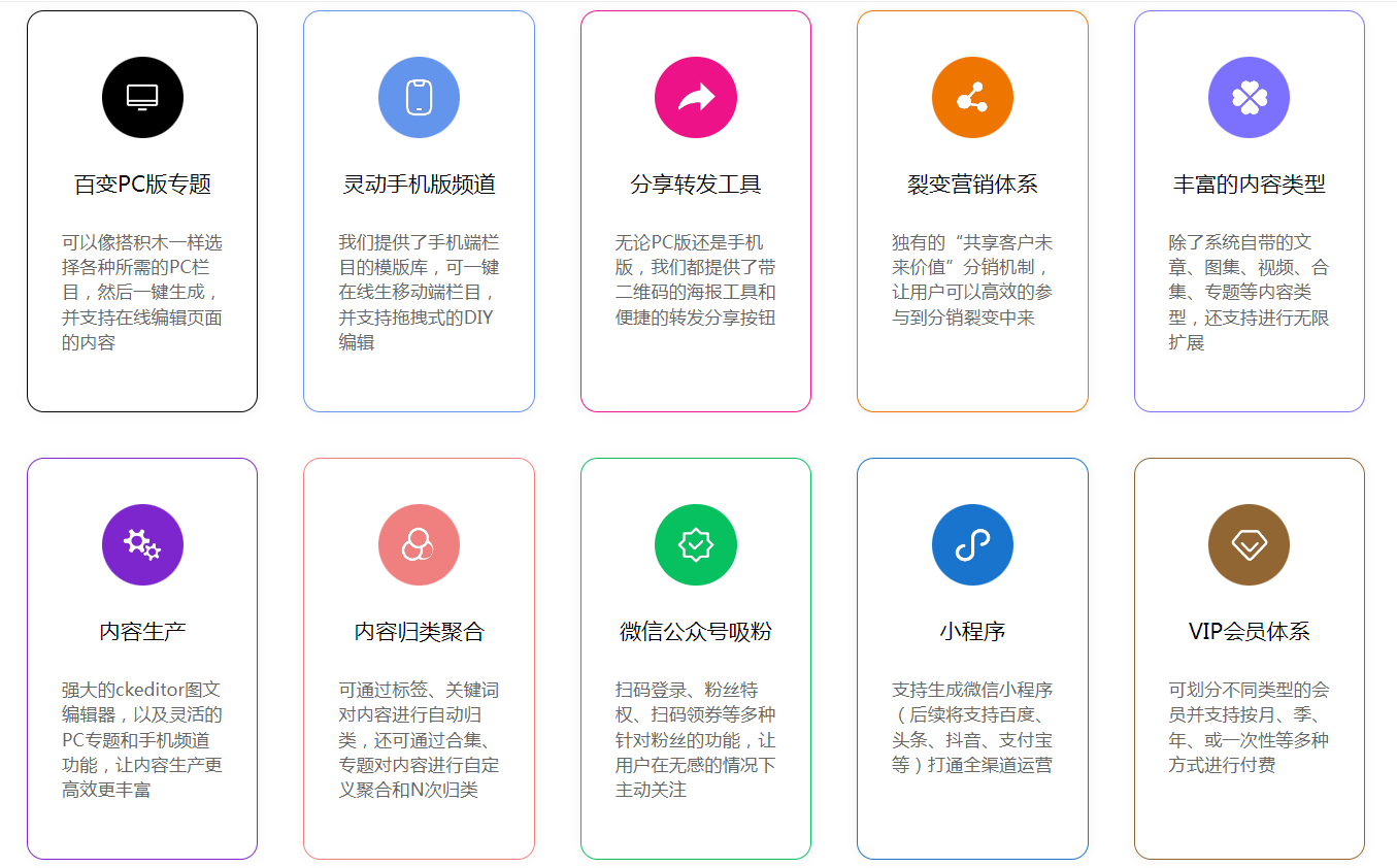我们将私域运营和客户管理引入CMS内容管理系统打造一个集PC网站、手机网站、微信公众号、小程序等多端一体的私域空间